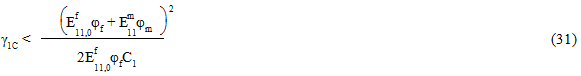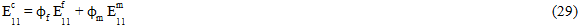 die Faseraxialdehnung, von der angenommen wird, dass sie gleich der Verbundaxialdehnung ist. Es wird eine Mischungsregel zum Berechnen des Verbundmoduls basierend auf dem aktualisierten Fasermodul (Gleichung 29).