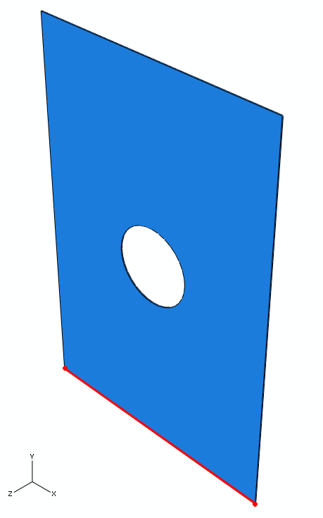 Wählen Sie wie unten gezeigt die untere Fläche der Platte im Ansichtsfenster als Bereich für die Randbedingung aus. Achten Sie darauf, dass Sie die untere Fläche und nicht eine der Kanten der unteren Fläche auswählen. Klicken Sie auf die Schaltfläche Done im Ansichtsfenster.