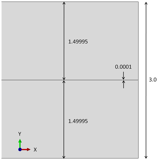 Bekanntermaßen hat die kohäsive Schicht eine Dicke von 0.0001 und der Balken eine Dicke von 3. Daher ergibt sich für den Versatz der Wert 1.49995 = (3-0.0001) / 2.