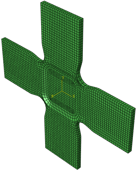 Die Geometrie wurde aufgeteilt, um ein einheitlicheres Netz zu erzielen. Das Netz besteht ganz aus C3D8R-Elementen.