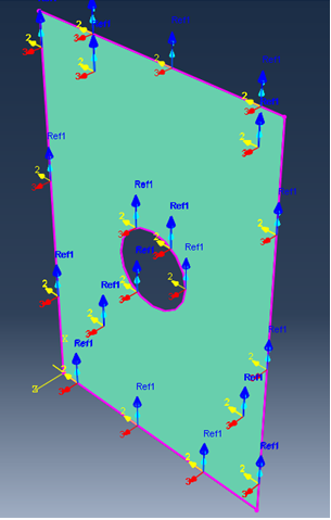 Die 1-Achse in der Abbildung unten stellt die Faserrichtung dar, da "1" als Faserrichtung im Plug-In "Verbundmaterial erstellen" angegeben wurde. Wenn "2" als Faserrichtung angegeben wurde, würde die 2-Achse die Faserrichtung darstellen.
