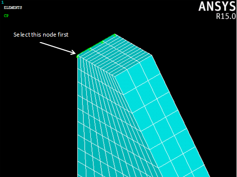 - Wählen Sie den Knoten an der oberen Kante des Belags (x = 0) wie unten gezeigt, und vergewissern Sie sich, dass Sie zuerst den Knoten auswählen, der unten angegeben ist (z = 0.5). Klicken Sie auf OK.