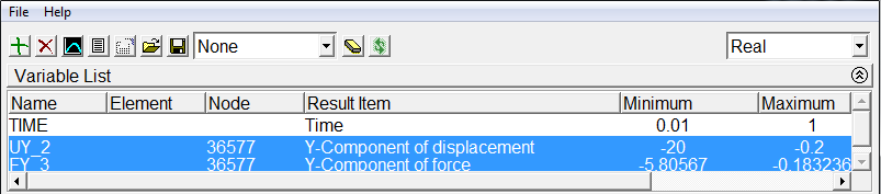 6. Um Rückstoßkraft und Verschiebung darzustellen, legen Sie die X-Achse auf UY_2 fest, wählen Sie UY_2 und FY_3, und klicken Sie auf das Symbol Graph Data. Das wird in der folgenden Abbildung dargestellt.