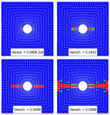 Das Anzeigen des Ausfallfortschritts ist häufig für die Visualisierung des Versagens einer Struktur nützlich. Klicken Sie auf , oder verwenden Sie den Befehl SET, um Ergebnisse zu bestimmten Zeitpunkten anzuzeigen.