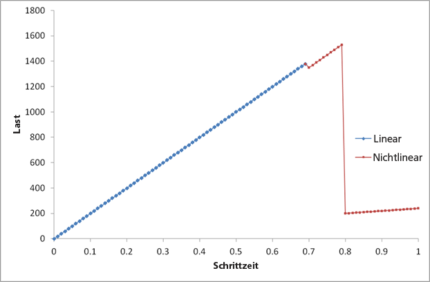 Das Schlüsselwort *DAMAGE TIME STEP verwaltet Material-Nichtlinearität, aber keine anderen Arten der Nichtlinearität, z. B. Kontakt- oder geometrische Nichtlinearität. Da jedoch Abaqus Kontakt- und geometrische Nichtlinearität verwaltet, tritt kein Konflikt auf, und alle drei Arten der Nichtlinearität können mit dem Schlüsselwort *DAMAGE TIME STEP verwendet werden.