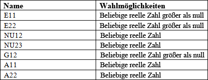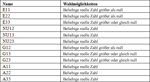 Wenn LAW=ISO, sind die Daten für das Schlüsselwort *MATRIX: