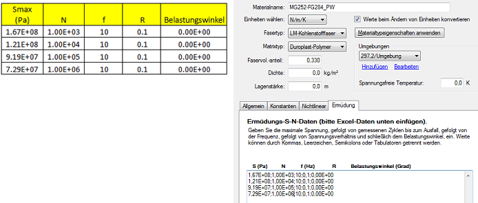 Dieses Feld enthält experimentelle Daten zur Lagenermüdung, bei denen es sich um S-N-Datenpunkte handelt. Ein S-N-Datenpunkt umfasst die folgenden Informationen: