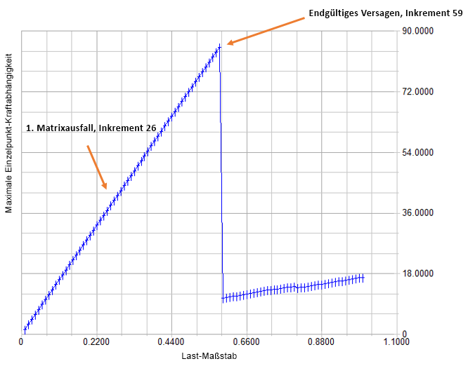 Wir sehen, dass Inkrement 26 den erste Matrixausfall in der Platte darstellt (PFA Schadenszustand = 2).
