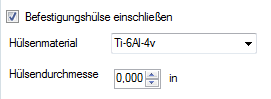 Sie können eine Befestigungshülse zur Verwendung einschließen, indem Sie auf das Kontrollkästchen klicken. Wenn Sie eine Befestigungshülse einschließen, müssen Sie das Hülsenmaterial und den Durchmesser angeben.