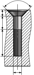 Sie können auch auswählen, ob Sie eine konische Senkung verwenden möchten. Geben Sie in diesem Fall die Tiefe des Schraubenkopfs an.