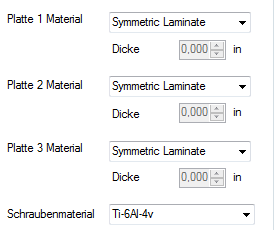 Wählen Sie das Laminat aus, das jede Platte definiert, und wählen Sie das metallische Material aus, aus dem die Schraube besteht.