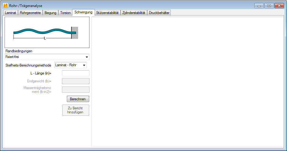 Nachdem Sie die Geometrie für Laminat und Rohr definiert haben, führen Sie die folgenden Schritte auf der Registerkarte Schwingung aus: