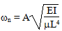 - Randbedingungen: Die Randbedingungen der Analyse werden aus einer Dropdown-Liste ausgewählt. Es sind acht verschiedene Randbedingungen verfügbar (Fixiert-frei, Frei-einfach, Fixiert-fixiert, Frei-frei, Einfach-frei, Einfach-einfach, Biegung Fixiert-frei mit Endmasse und Torsion Fixiert-frei mit Endmasse). Die ersten sechs Optionen verwenden die Berechnungsformel im Handbuch für Stöße und Schwingungen (Verw. 11.3), die in der Gleichung unten gezeigt wird.