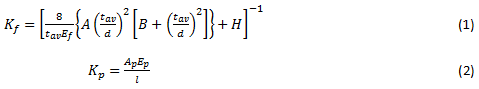A, B und H sind empirisch ermittelte Konstanten. tav ist die mittlere Dicke der Platten in der Verbindung, d ist der Durchmesser der Schraube und Ap ist der Querschnittsbereich der zu analysierenden Platte. Ep ist das Elastizitätsmodul der Platte in Lastrichtung und l der Abstand zwischen Schrauben in der Lastrichtung [42].