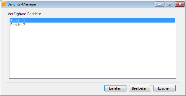 Sie können mit dem Berichts-Manager eine beliebige Anzahl von Berichten erstellen. Sie können mit dem Berichts-Manager auch vorhandene Berichte bearbeiten oder löschen.