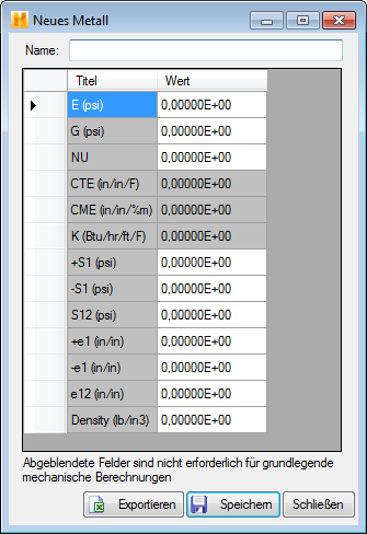 - Geben Sie im Fenster Neues Metall einen Namen in Name ein.