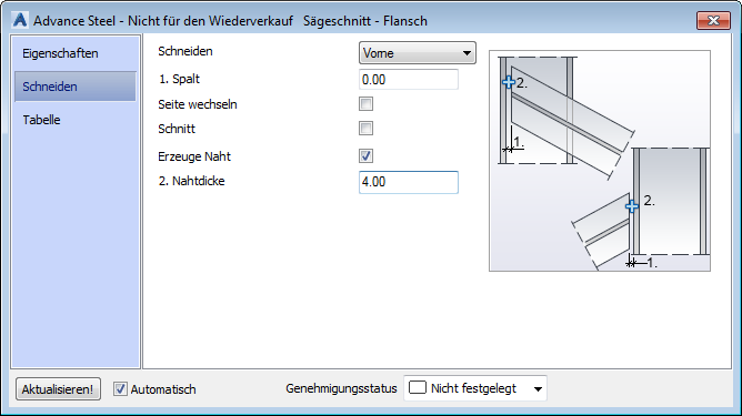 Ist diese Option ausgewählt, wird der Schnitt der Träger an der Winkelhalbierenden erstellt. |