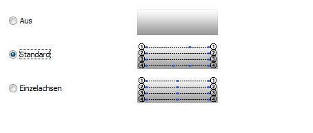 Das obere Feld definiert den Abstand zwischen der ersten und der letzten Achse der Gruppe. Die Anzahl der Achsen ändert sich entsprechend. Das andere Feld definiert die Länge einer Achse.