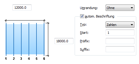 Die Achsen können automatisch oder manuell beschriftet werden. Wenn die automatische Beschriftung deaktiviert ist, kann die Beschriftung für jede einzelne Achse auf der Registerkarte Einzelachse geändert werden. Für die automatische Beschriftung können die folgenden Parameter festgelegt werden: