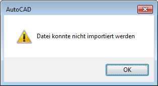 Wenn ein falscher Dateityp für den Import ausgewählt wird, wird eine Fehlermeldung angezeigt: