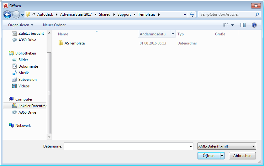 Der Vorgang für den Import ist ähnlich wie beim Export. Ein Fenster Öffnen wird angezeigt, in dem Sie aufgefordert werden, den Speicherort der Abfrage anzugeben: