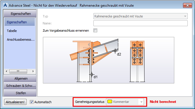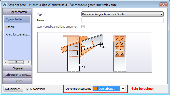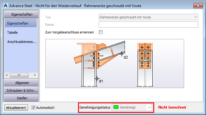 ) verwenden, bleibt der Genehmigungsstatus unverändert. Wenn Sie einen Anschluss aus einer Anschlussgruppe lösen (_AstorDetachSlaveJointFromMaster), bleibt der Genehmigungsstatus des gelösten Anschlusses unverändert.