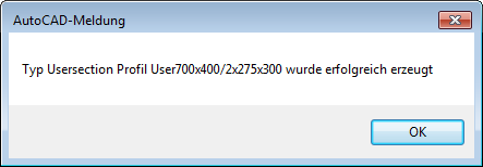 Die folgende Meldung bestätigt, dass das Profil erfolgreich erstellt wurde: