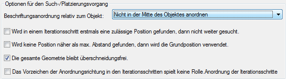 Wählen Sie aus der Liste eine Regel zum Platzieren von Beschriftungen. Die bestehenden Regeln können umbenannt und neue Regeln können hinzugefügt werden.