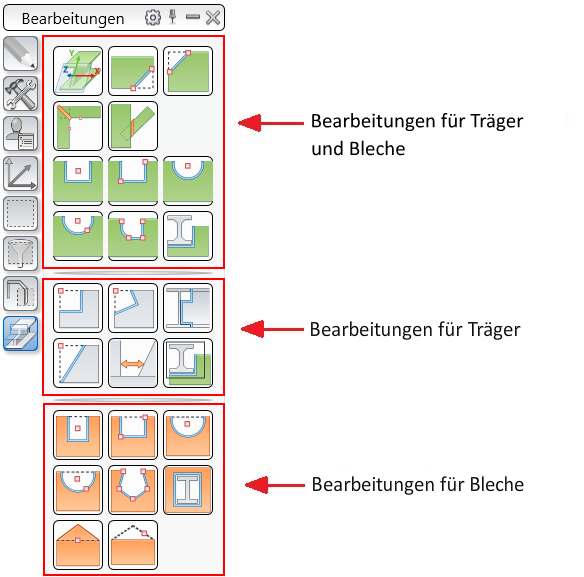 Um Konturen auszuschneiden oder auszuklinken, verwenden Sie die Werkzeuge auf der Werkzeugpalette Bearbeitungen:
