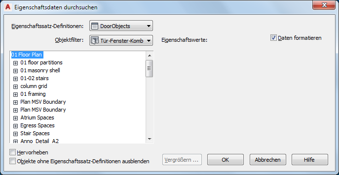 5. Fügen Sie die gewünschten Eigenschaftssatzdaten den Objekten hinzu: