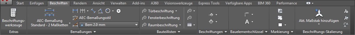 Die Registerkarte Beschriften enthält Befehle zum Beschriften der Zeichnungsdateien.