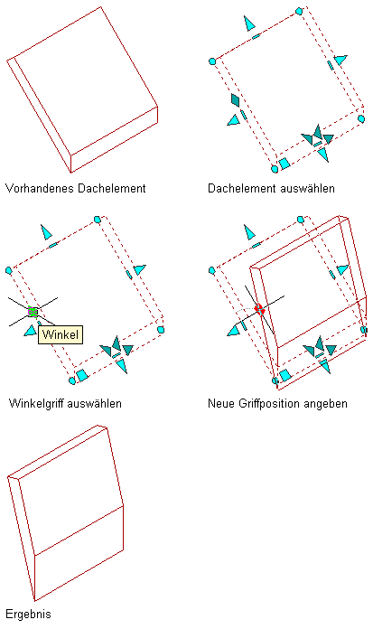 Bearbeiten der Dachelementneigung mithilfe des Griffs für den Winkel