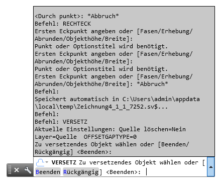 Wenn das Befehlsfenster nicht fixiert ist und Sie F2 drücken, wird oberhalb oder unterhalb der Befehlszeile eine Liste der Befehle oder Eingabeaufforderungen angezeigt, die Sie verwendet haben.