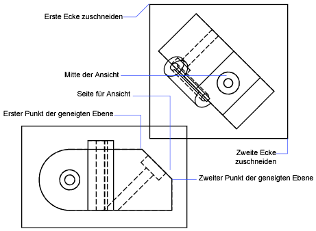 Die für die Hilfsprojektion verwendete geneigte Ebene wird durch zwei Punkte definiert. Beide Punkte müssen sich im selben Ansichtsfenster befinden.