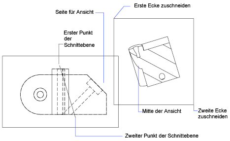 Legen Sie die Ansichtsseite fest, indem Sie einen Punkt auf einer Seite der Schnittebene angeben.