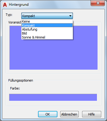 Listet die Hintergrundüberschreibungen (Keine, Kompakt, Abstufung, Bild oder Sonne & Himmel) auf, die Sie auf eine benannte Ansicht anwenden können.
