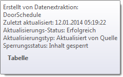 Wenn eine Zeichnung mit einer Datenextraktionstabelle in AutoCAD LT geöffnet wird, zeigt der QuickInfo-Text an, dass die Tabelle extrahierte Daten enthält. Sie können die extrahierten Daten nicht aktualisieren und keine Datenverknüpfungen (falls vorhanden) ändern.
