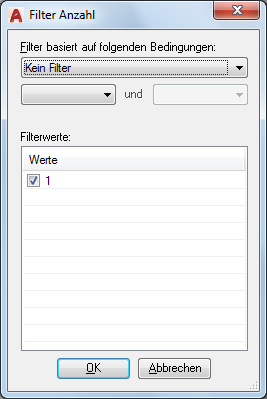 Zeigt abhängig vom gefilterten Datentyp eine Liste mit Werten an. Filter für numerische Daten umfassen Größer als (>), Ist gleich, Zwischen usw. Filter für Textdaten umfassen Ist gleich, Nicht gleich, Enthält und Beginnt mit.