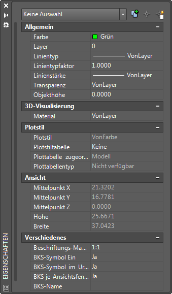 - Wenn keine Objekte ausgewählt sind, können Sie die aktuellen Eigenschaften anzeigen und so ändern, dass sie für alle neuen Objekte verwendet werden.