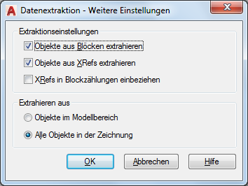 Berücksichtigt Objekte und Blöcke in extern referenzierten Dateien (XRef-Dateien).