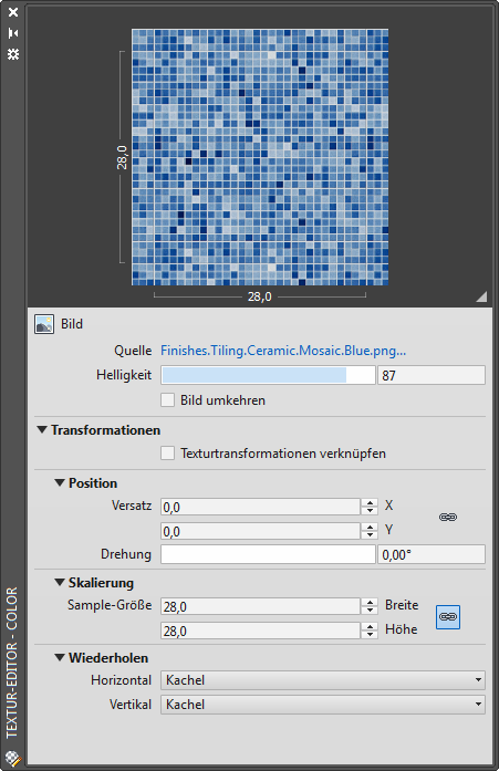 Bearbeitet die Eigenschaften des Bilds oder der prozessabhängigen Texturen.