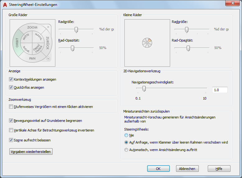 Wendet die Vorgabeeinstellungen für die SteeringWheels an.