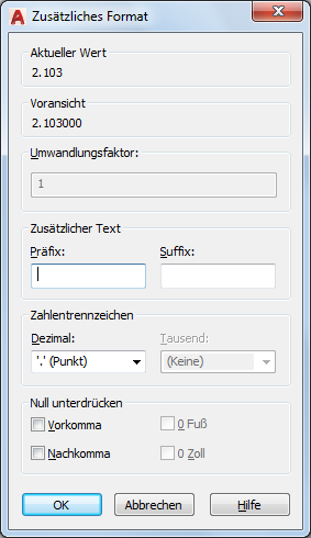 Steuert die Unterdrückung von führenden und nachstehenden Nullen sowie von Fuß und Zoll mit Nullwerten.