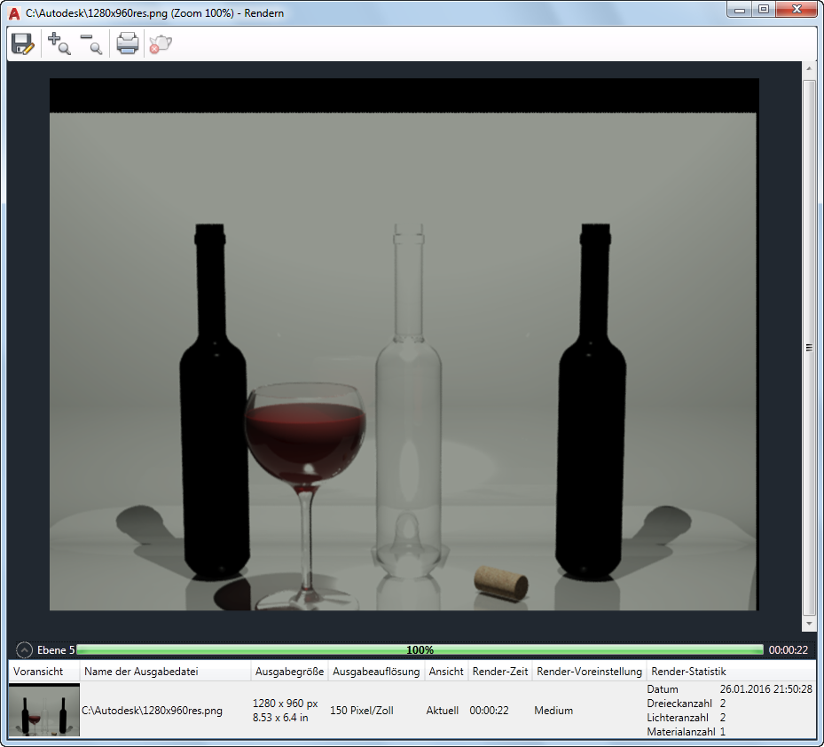 Die Renderausgabe aus einer Zeichnung wird immer im entsprechenden Renderfenster angezeigt.