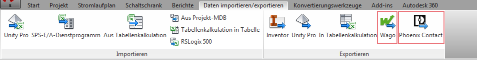 Sie können Klemmenleisten aus AutoCAD Electrical exportieren und danach in Wago- und Phoenix Contact-Anwendungen importieren, um die Klemmenleisten zu entwerfen, zu ändern und zu überprüfen.