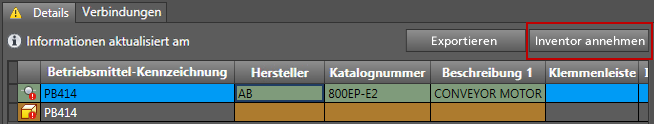 Die eingefügten Stecker werden automatisch mit den Inventor-Steckern verknüpft.