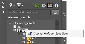 Wenn die Inventor-Baugruppe im elektromechanischen Projekt Stecker enthält, können Sie diese jetzt aus der Registerkarte Ortsansicht einfügen. Wählen Sie einen beliebigen Knoten oder einen bestimmten Stecker in der Strukturansicht aus, und klicken Sie mit der rechten Maustaste zum Einfügen.