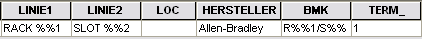 "%%N" steht für die berechnete E/A-Adresse, "EIN-" ist das zum Adressenwert hinzuzufügende Präfix. Sie können auch die Werte der Eingabeaufforderung verwenden. Wenn Sie zum Beispiel die Baugruppenträger- und Gruppennummern (Eingabeaufforderungen %%1 und %%2) dauerhaft in den einzelnen E/A-Adresswerten codieren möchten, codieren Sie die einzelnen E/A-Adresseinträge in der Datendatei mit "BMKA_=%%1%%2%%N."