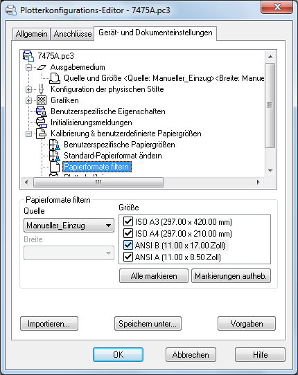 Passt den druckbaren Bereich für Standardpapierformate den Möglichkeiten des Druckers an. (Mit dem Plotterkonfigurations-Editor können Sie keine benutzerspezifischen Papierformate für Windows-Systemdrucker erstellen.)