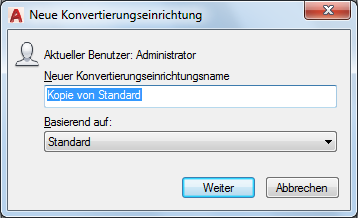 Wählen Sie eine vorhandene Konvertierungseinrichtung, auf der die neue Konvertierungseinrichtung basieren soll.